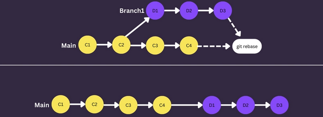 A hotly debated and misunderstood concept. It moves the entire commit history of a branch to the end of the base, allowing for a fast-forward merge. In other words, it’s merge-commit-less.